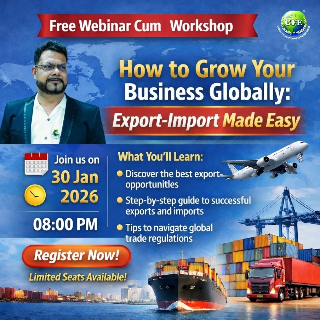 Join us to explore Export-Import, Ecommerce, and Other Global Opportunities. Network, Learn, and Grow your Business with Expert Guidance!